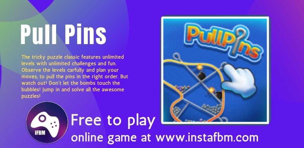 Pull Pins Apr 4, 2026Apr 4, 2026 admin The tricky puzzle classic features unlimited levels with unlimited challenges and fun. Observe the levels carfully and plan your moves, to pull the pins in the right order. But watch out! Don’t let the bombs touch the bubbles! Jump in and solve all the awesome puzzles!